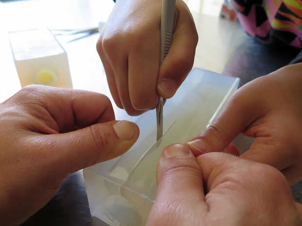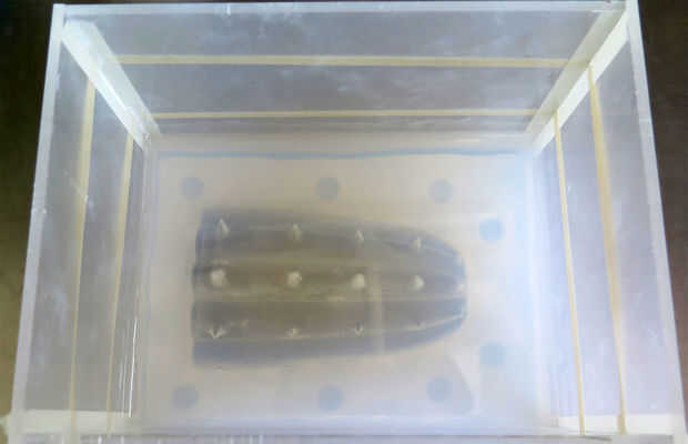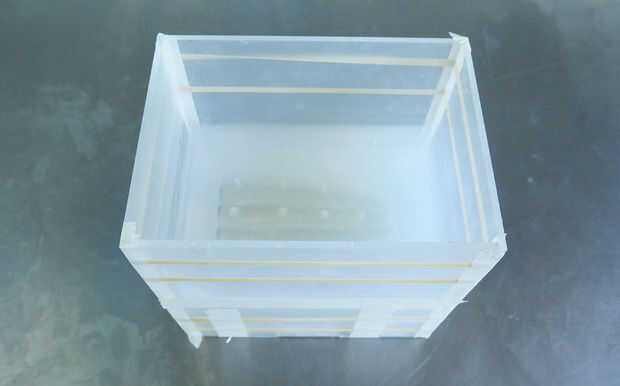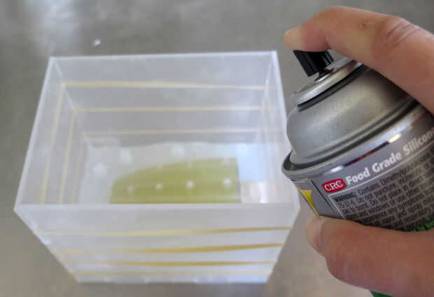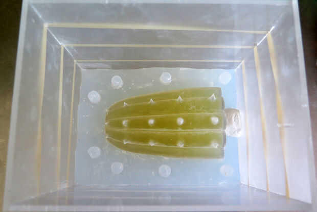 Mezclar, desgasificar y verter en la segunda mitad de la silicona en la caja de moldeo. Repita el proceso en el último paso.