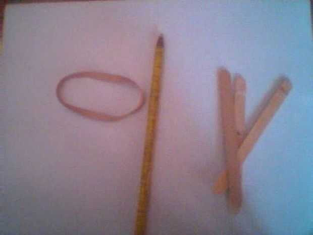 este arco y la flecha es tan fácil, usted puede hacer en 5 minutos!Paso 1: materiales Primero conseguir todos los materiales necesarios para hacer esta cinta de arco y flecha, 3 palillos de dientes y una banda de caucho.Paso 2: Parte principal Take 2