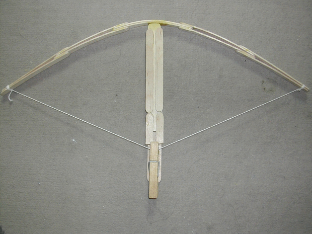 una simple pero poderosa ballesta hecha de palitos con una distancia de casi 9 metros.
