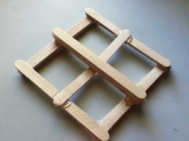esto es fácil de construir y sólo utiliza 5 palitos. Explota cuando golpea el suelo. Un popsicle stick mi descanso pero generalmente no sucede.Paso 1: Esta es la parte fácil Solo mira la imagen.Paso 2: Esto es cuando se pone duro Asegúrese de constan