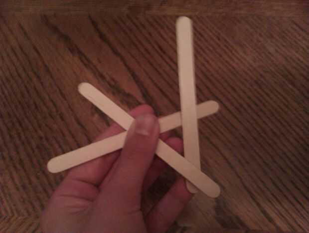 esto es fácil de construir y sólo utiliza 5 palitos. Explota cuando golpea el suelo. Un popsicle stick mi descanso pero generalmente no sucede.Paso 1: Esta es la parte fácil Solo mira la imagen.Paso 2: Esto es cuando se pone duro Asegúrese de constan