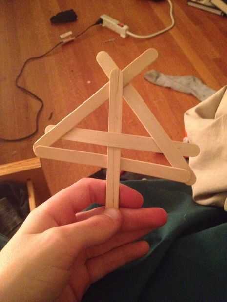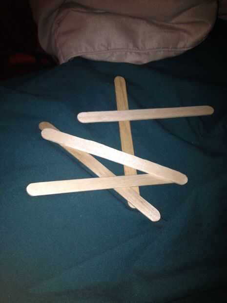 esto es fácil de construir y sólo utiliza 5 palitos. Explota cuando golpea el suelo. Un popsicle stick mi descanso pero generalmente no sucede.Paso 1: Esta es la parte fácil Solo mira la imagen.Paso 2: Esto es cuando se pone duro Asegúrese de constan