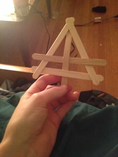 esto es fácil de construir y sólo utiliza 5 palitos. Explota cuando golpea el suelo. Un popsicle stick mi descanso pero generalmente no sucede.Paso 1: Esta es la parte fácil Solo mira la imagen.Paso 2: Esto es cuando se pone duro Asegúrese de constan