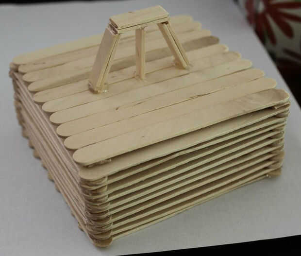 Se trata de una caja de tesoro fácil hecha de palitos y tiene cola.