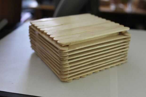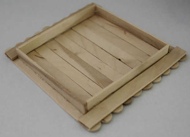 Como lo hizo con la base del principio de la caja, solo vas a hacer un cuadrado con diez palos y pegarlas junto con los dos palos en los extremos para unir los palillos. Para el interior de la tapa que mantiene la tapa en sin deslizarse, medir el interior de la caja con una regla, como se muestra en la imagen. Mina con cerca de 8 1/2 pulgadas en un lado y 8 pulgadas en el otro. Ahora cortar dos piezas de cada una de las dos medidas (en total cuatro palos) y pegar en un pie cuadrado (no boca abajo) en el interior de la tapa. Puede tomar varios intentos para conseguir que encajarán bien.