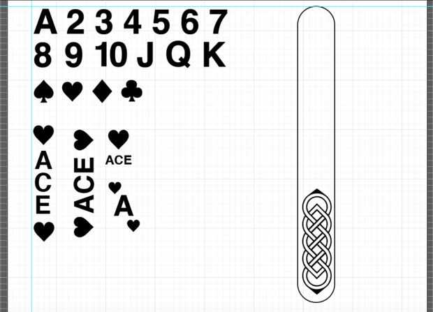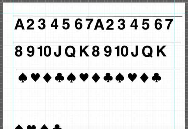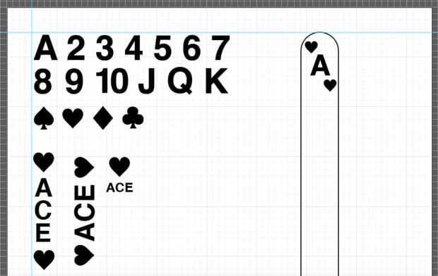 Yo jugaba con unos formatos antes de decidirse a ir con un estilo muy básico de la tarjeta (con el número grande en la parte superior y la suite un poco más pequeña por debajo de ella). Para experimentar, puede utilizar el palillo de arte enorme en el archivo para averiguar lo que se ajusta. Tratar de no acercar demasiado a los bordes.