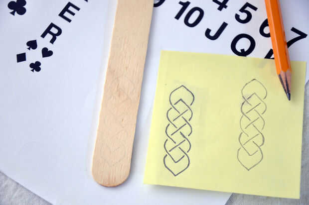 Después de que hayas decidido cómo se verá la parte delantera de la palanca de la tarjeta, usted necesita decidir sobre un nuevo diseño. Fui con una imagen del tipo de nudo céltico que encontré y alterado. Si usas mi imagen, realmente trazada por el centro de diseño celta. No quiero pasar mucho tiempo realmente alterar el símbolo en Photoshop, así que trabajé con él lo que es.