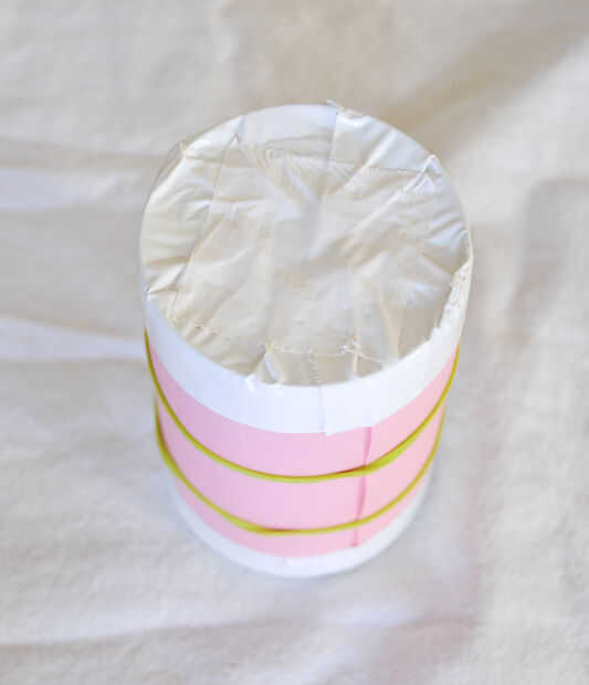 Cinta adhesiva en la parte superior de la lata y la parte inferior. Para la apertura, salí de 2/3 de él colgándose y había doblado dentro de la lata. Puede ser difícil hacer esto sin que se pegue la cinta a sí mismo. También cubre la parte inferior con la cinta extra y poner en una plaza extra de la cinta que cubre la lata izquierda expuesta.