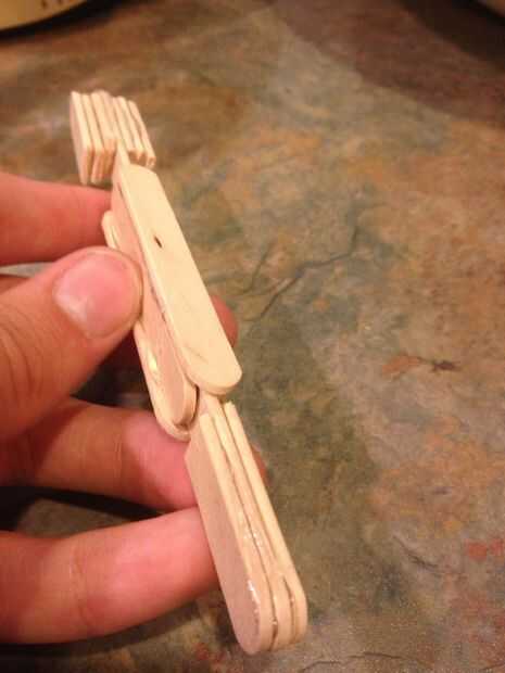 esto es fácil de construir y sólo utiliza 5 palitos. Explota cuando golpea el suelo. Un popsicle stick mi descanso pero generalmente no sucede.Paso 1: Esta es la parte fácil Solo mira la imagen.Paso 2: Esto es cuando se pone duro Asegúrese de constan