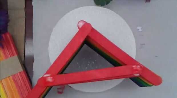 1. Empezar la maceta pegar dos palitos en forma de "L". El tercer palo no será tiempo suficiente para hacer un triangulo perfecto pero no te preocupes, tu pote será adorable.