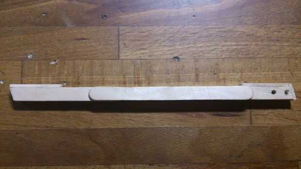 El riel inferior actúa como la guía principal para el brazo de disparo y su característica principal es la habitación para el disparador del brazo de disparo. Asegúrese de que hay suficiente espacio aquí para el gatillo mover la escalera del brazo de disparo puede extender completamente y retrae completamente de la escalera del panel posterior.