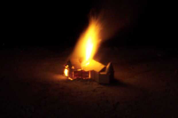 Ahora, yo puedo ser sacar un Instructable real pronto con consejos sobre cómo hacer tu propia casa de palo de paleta; pero por ahora, aquí hay algunas fotos del proceso de cremación.