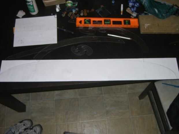 me di cuenta de la forma quería y escalar así que pude usar 5 hojas de 8 1/2 x 11 "papel como plantilla. Graba solo las hojas juntos cortado y estaba parado al lado de él para asegurarse de que se sentía bien.