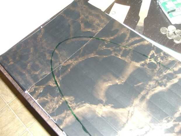 He trazado la forma de la plantilla sobre el vinilo y agregó una línea de centro.