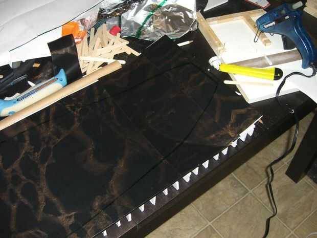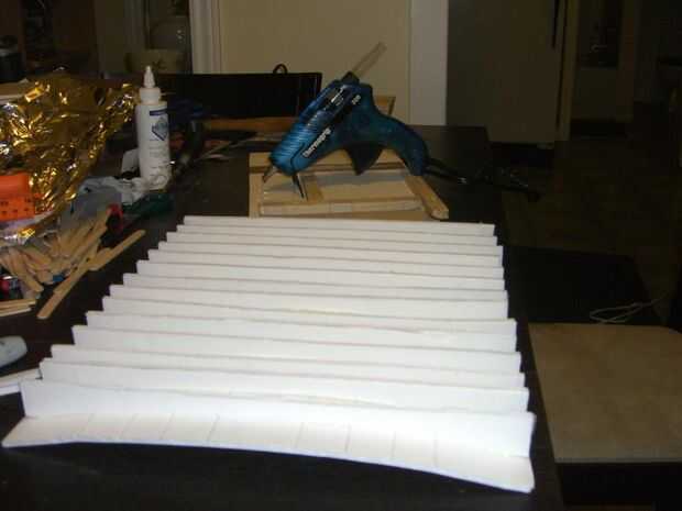 La sección de cola curvada del molde se construyó de piezas de espuma.