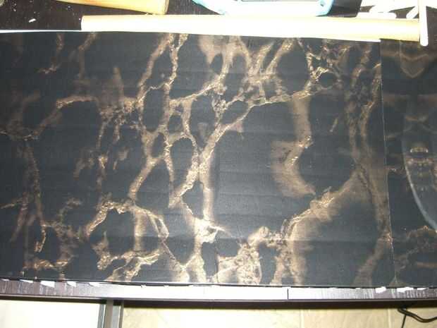 Para mantener la paleta se pega se pegue al molde cubierto la superficie de pegado con algún brillante vinilo "jaspeado" tengo en la tienda de dólar.