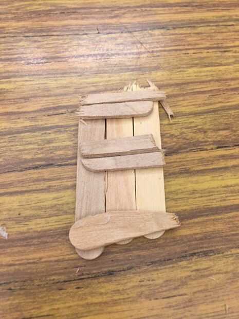 esto es fácil de construir y sólo utiliza 5 palitos. Explota cuando golpea el suelo. Un popsicle stick mi descanso pero generalmente no sucede.Paso 1: Esta es la parte fácil Solo mira la imagen.Paso 2: Esto es cuando se pone duro Asegúrese de constan