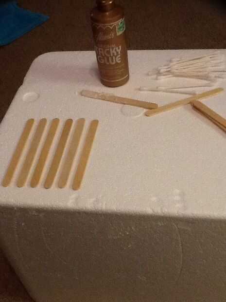 esto es fácil de construir y sólo utiliza 5 palitos. Explota cuando golpea el suelo. Un popsicle stick mi descanso pero generalmente no sucede.Paso 1: Esta es la parte fácil Solo mira la imagen.Paso 2: Esto es cuando se pone duro Asegúrese de constan