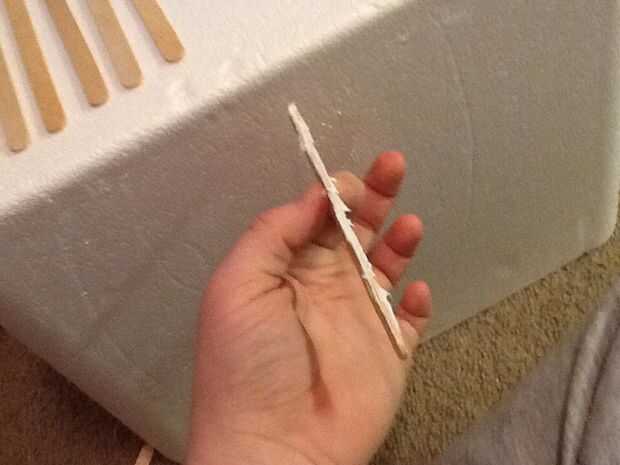 esto es fácil de construir y sólo utiliza 5 palitos. Explota cuando golpea el suelo. Un popsicle stick mi descanso pero generalmente no sucede.Paso 1: Esta es la parte fácil Solo mira la imagen.Paso 2: Esto es cuando se pone duro Asegúrese de constan