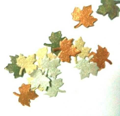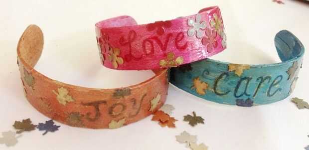 Pintar las letras en el brazalete y perfore algunas hojas decorativas... cortar más por lo que puede espolvorearlos sobre la mesa.