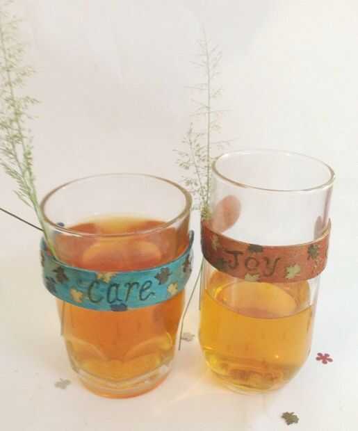 Deslice los brazaletes sobre el vaso y decorar con una ramita de frescura!
