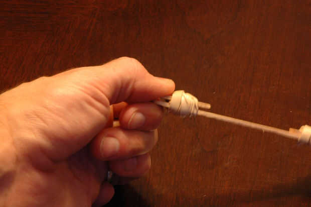 Lugar el pequeño 1/4" pieza en la manija y ponga 1.25" pieza en la parte superior. Y el abrigo con la goma.