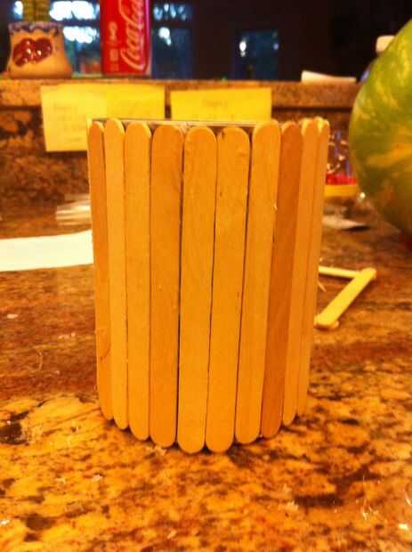 esto es fácil de construir y sólo utiliza 5 palitos. Explota cuando golpea el suelo. Un popsicle stick mi descanso pero generalmente no sucede.Paso 1: Esta es la parte fácil Solo mira la imagen.Paso 2: Esto es cuando se pone duro Asegúrese de constan