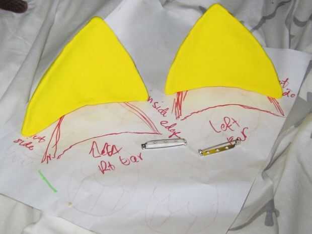 Quería que la iguale el color de la vestimenta... una vez en la tienda de arte, encontré esta arcilla espumosa, peso ligero, vinieron en colores brillantes crayones. Un paquete para cada oído. Si te fijas bien en los oídos ahora ves pequeñas grietas en el material pero en su mayor parte se ve bien y es ligero y tomó los alfileres y pegamento que necesitaba agregar a él para llevarlos a su peluca.