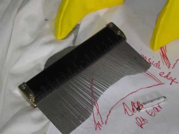 La herramienta es normalmente para ranurar madera para cortar madera de ajuste a la forma correcta cuando la coincidencia de las esquinas a inglete... Había empujado a esta herramienta de trazado en la curva de la cabeza de mi hija, dibujó la curva de la cabeza para el lado izquierdo en el papel y luego hizo lo mismo en el lado derecho. Supongo que otra forma fácil de hacer esto podrían usar otro fácilmente hallarse moldeable (como papel de aluminio) para hacer la forma y el tamaño de las orejas en la cabeza correcta. Utiliza la curva para dibujar los oídos en papel y luego después que tenía dibujado hacia fuera de cada lado con la altura correcta y la curva, abrí y moldeó la arcilla en los oídos. Yo sabía que esta arcilla rápidamente - tenía cerca de 10 minutos por oído para trabajar. Una vez mi hija pensó se veían bien y he probado la curva manteniendo en la cabeza. Yo les deje reposar para que se seque. Una cosa que no creo sobre - saqué mi 'bocetos' en tinta roja, y puse uno de los oídos en el dibujo. Puesto que la arcilla tiene una sensación aceitosa que, la línea roja transfirió en el oído. Frotado apagado - pero ten cuidado donde dejas estos mientras que. Los dejé toda la noche para que se seque completamente ya que eran cerca de 2" de espesor en la parte más ancha.