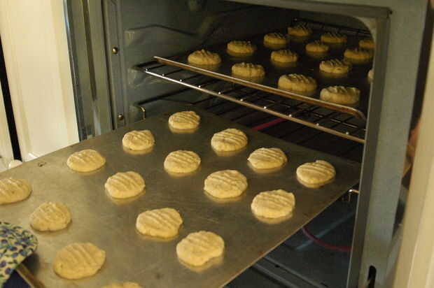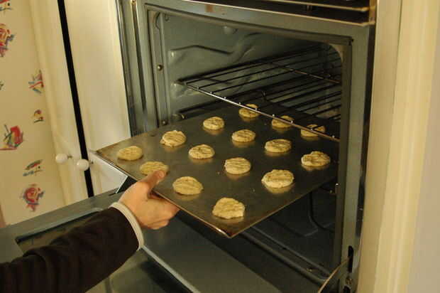 Una vez que el horno ha alcanzado la deseada 325F, deslice las hojas para hornear en y trate de ser paciente. No te preocupes, sólo tienes que esperar 10-15 minutos. Deben ser siempre-tan-ligeramente doradas, emanando el olor más dulce imaginable. Cuidadosamente retire del horno y transferirlos a una rejilla para enfriar. Intente evitar babear directamente sobre las galletas.
