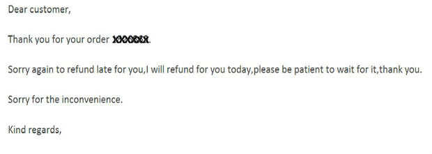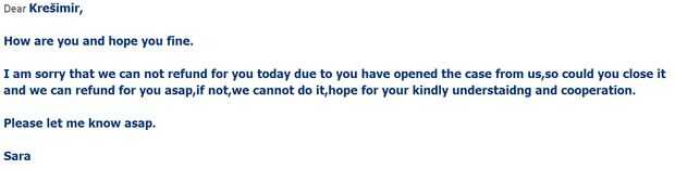 De sólo 2 días más adelante, después de varios e-mails y 2 meses y 4 días de espera finalmente dio para arriba y me dio un reembolso.