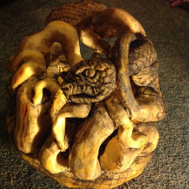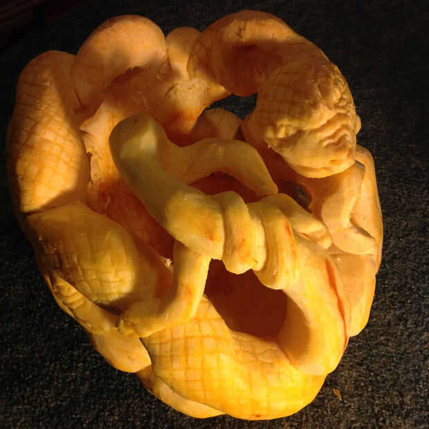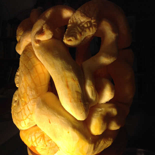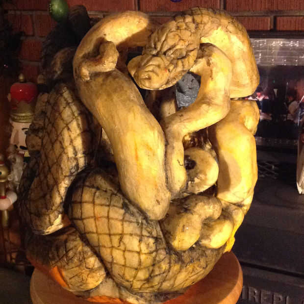 Tengo un kayak de 13 pies y un garaje lleno de gente, y almacenaje horizontal (utilizando un sistema de polea para una bicicleta) era problemático. Por suerte mi garaje lleno de gente tiene un bonito techo alto con vigas a la vista, así que pude aseg