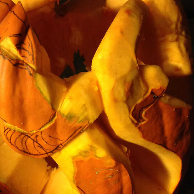 Las imágenes de este paso muestran el proceso de conseguir una serpiente detrás de otro: la bobina en el frente es bastante sencilla - a la vuelta. Pero la bobina en la parte posterior del arco escarpado hacia el centro de la calabaza hasta que se ofrece "detrás" en el frente.