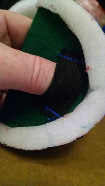 He desviado de las instrucciones impresas y seguido lo que se vio en los videos para el montaje de la placa de la boca. En el video, le permitió un espacio entre las placas de la anchura de un lápiz. se me olvidaba era al poner el espacio entre las placas, necesario quitar mucho material de la placa que no se extiende la profundidad de la placa. Había pegado y cosido la placa mal antes de que me di cuenta que era demasiado grande para el agujero de la boca. Tiempo de copia de seguridad y rehacer. Una vez me sale mejor en la costura, reutilizará el conjunto mal de cabeza y boca.
