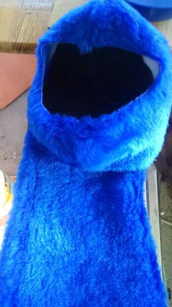 Coser la cabeza como se indica en el patrón. Coser las piezas de cuerpo y coloque la cabeza al cuerpo. Puede utilizar una aguja para recoger la espuma fuera de los bordes para ayudar a ocultar la costura