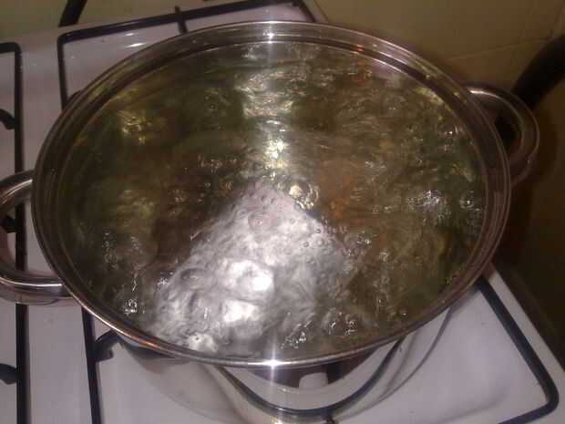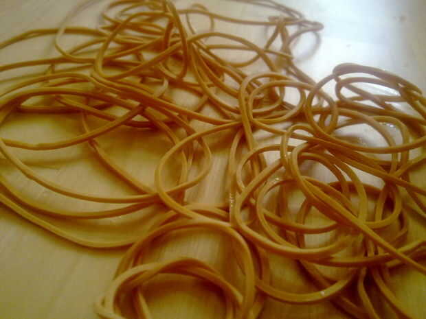 Envuelva una taza en elásticos y sumergir en agua hirviendo durante unos minutos.