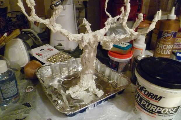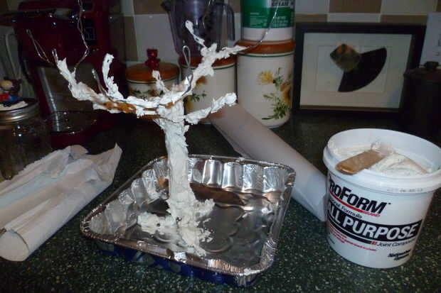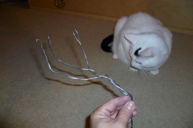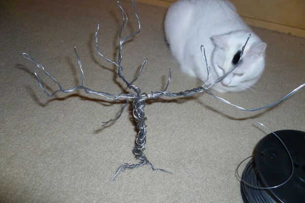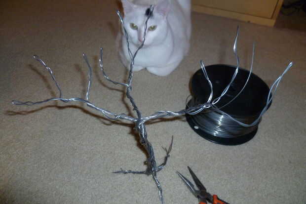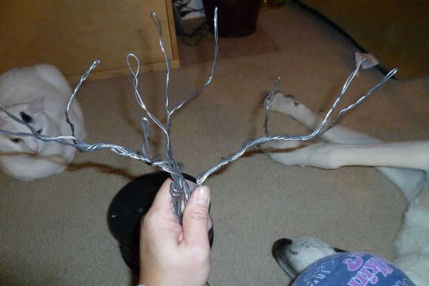 Tomar 3 de las tiras retorcidas y gire el togther 3 para hacer ramas más largas. Crear 3 de estas ramas. Añadir cable trenzado adicional para crear más ramas.