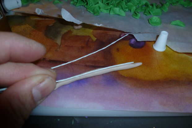 Mezclar pintura acrílica marrón a la CP. Rodar un largo trozo de arcilla marrón y agregar al cable.