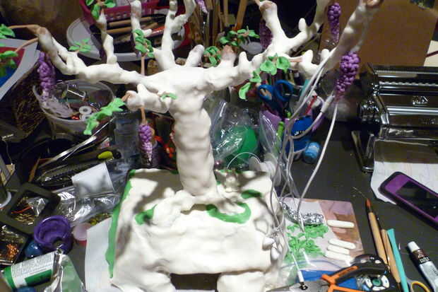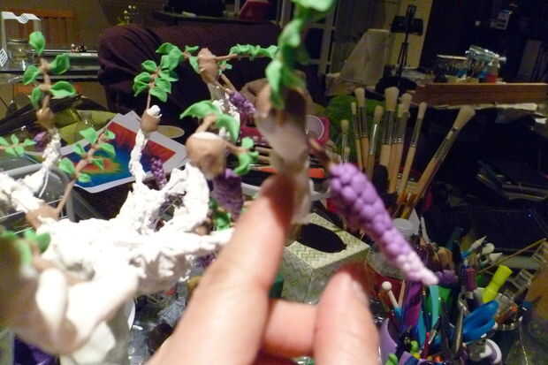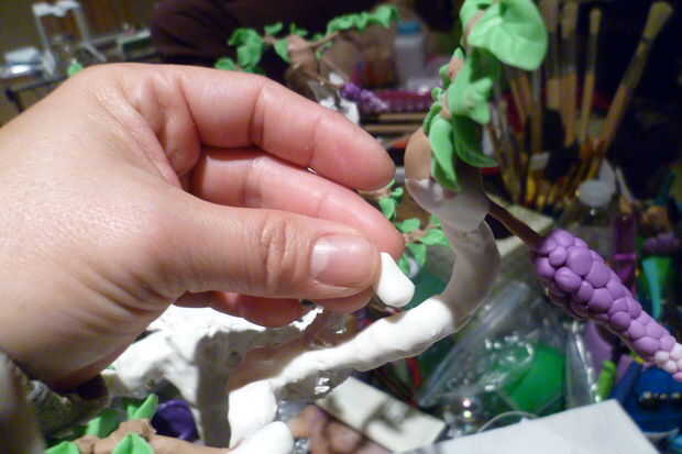 Una salchicha gruesa de la arcilla el rodillo y cortar en trozos. Añadir esto a la rama. Estas cepas le ayudará a mantener los audífonos. Pone un brote de oído sobre una de las ramas para asegurarse de que las ramas pueden contener el brote de oído.