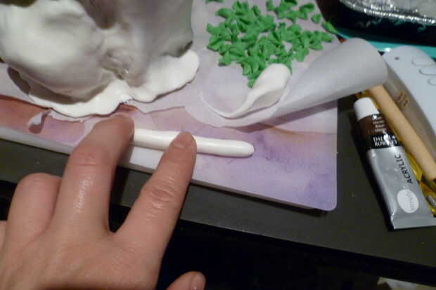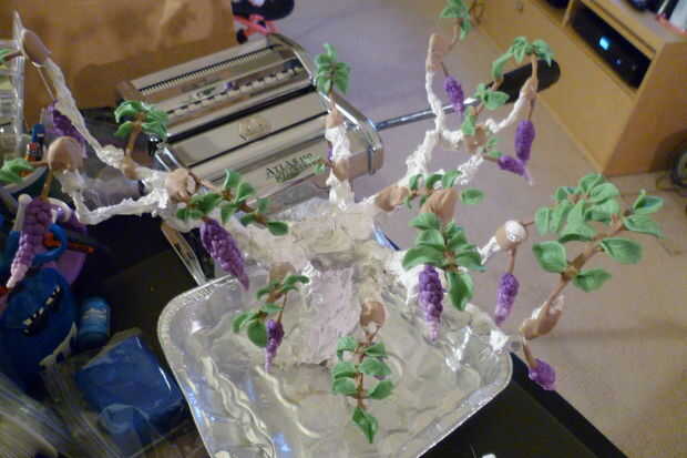Después de colocar todas las hojas y flores, cubra el árbol entero con CP.