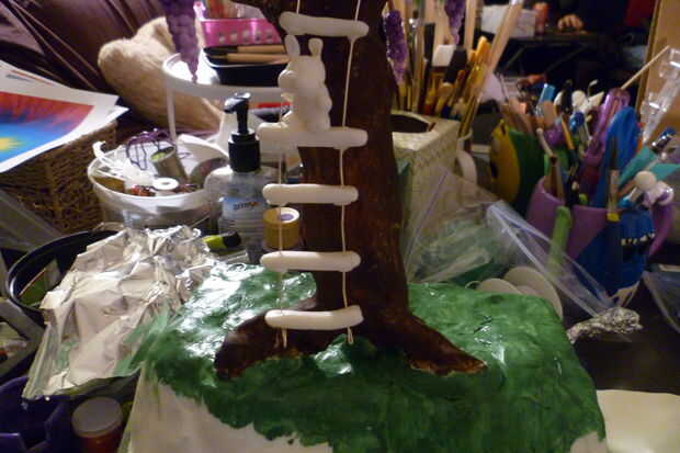 Permita que la escultura se seque totalmente (pocos días), luego la escultura con el barniz del esmalte. CP es diferente de la arcilla del polímero en que puede utilizarse cualquier barniz o spray.
