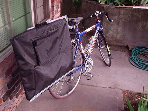 se trata de un portador de enganche montado de bajo costo para una bicicleta reclinada, aproximadamente 1/5 del costo de la variedad comercial.Ingredientes:Un "Transportador de carga excesiva" de puerto de carga, $40 en ventahttp://www.harborfre