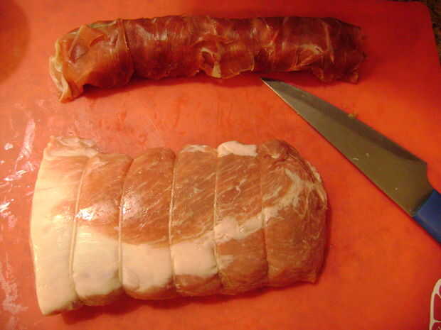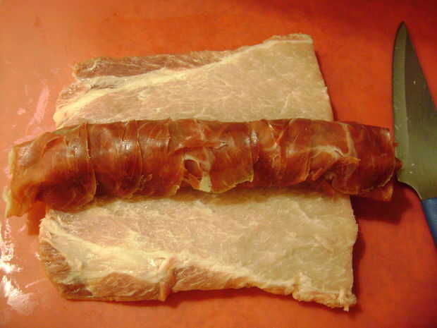 Porkamacon! Rellenas de jamón de cerdo envuelto en bacon (4 / 6 paso)