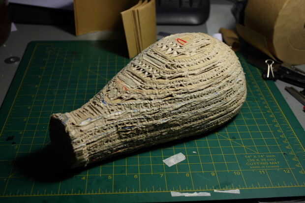 Taladré agujeros a través del cuerpo en forma de Porkupine utilizando un taladro con una broca de 13mm. Los agujeros no eran tan precisos como esperaba, pero supongo que es una caída de perforación en ángulo a través de un bloque de cartón corrugado. Los agujeros se parecen a la deriva en diferentes direcciones, aceptado y procesado a lo largo sin mucha frustración.