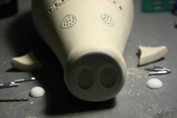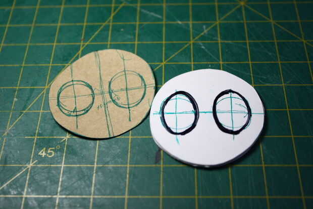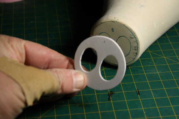Ojos: utilicé la masilla de modelar marrón (mostrada anteriormente) para los ojos de epoxy blanco. Esto se hace presionando mi dedo en la masilla, dejando 2 abolladuras pequeñas, que llené con epoxi.