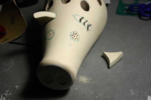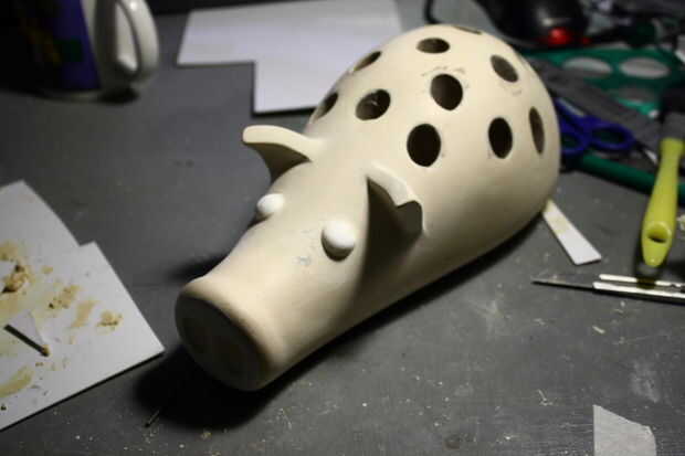 Orejas: Las orejas se realizaron desde el llenador del cuerpo mismo como usado en el cuerpo. Se mezcló y se unta en un molde áspero hecho de pedazos doblados unos de plástico. Usé algunos pernos hilti como mayor resistencia durante el pegado de las orejas al cuerpo. Solía llenador del cuerpo como el método de vinculación sostenga y liso hasta la unión entre el oído y el cuerpo.