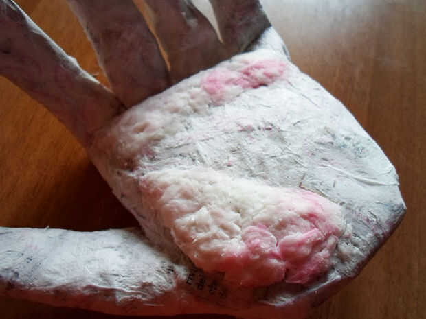 Otra vez, unte pegamento en esa pieza y continuar este camino para cubrir toda la mano.