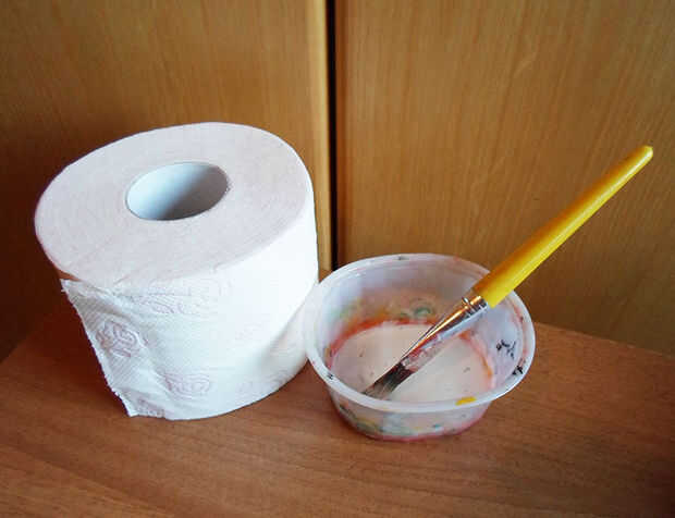 Difunda en la mano, con un pincel y poner un trozo de papel higiénico en él.