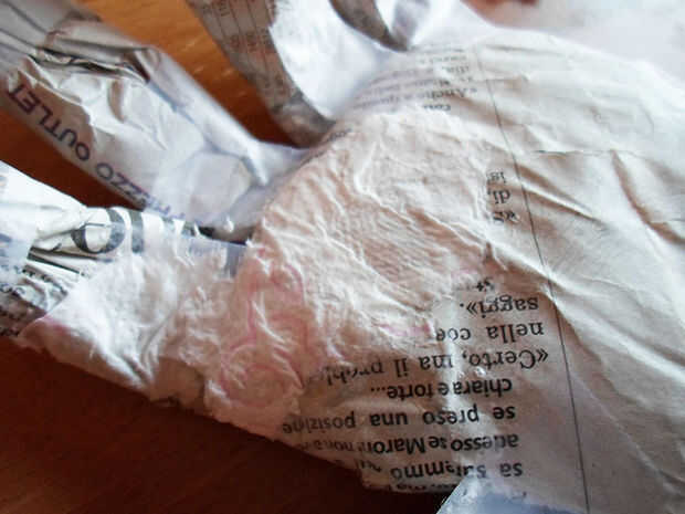 Yo suelo utilizar el periódico para hacer papel maché, pero decidí usar papel higiénico en este caso. Pensé que conseguiría más duro mucho más rápido de esta manera... pero esto depende de usted.