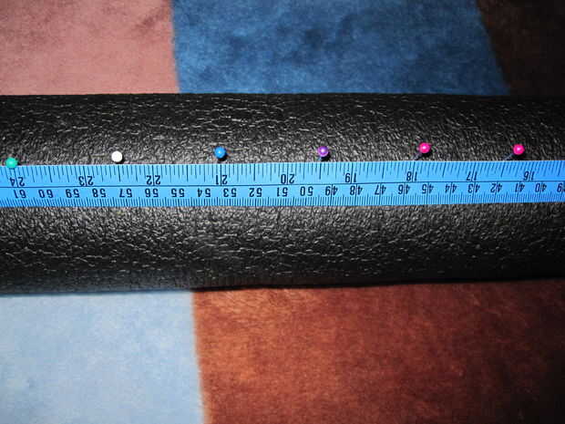 Una vez que han dejado que su titular durante un par de horas, encontrar su cinta y alfileres. Coloque el soporte sobre una superficie plana y medida 1 1/2 pulgadas desde el extremo y coloque su primer pin. Continuar colocando alfileres cada 1 1/2 pulgadas hasta llegar al final. A continuación tomar un destornillador y perforar a través del soporte donde está el primer pin. Mantenga los pernos de tracción y perforación agujeros donde los pines marcados una vez hasta que no queden pernos.